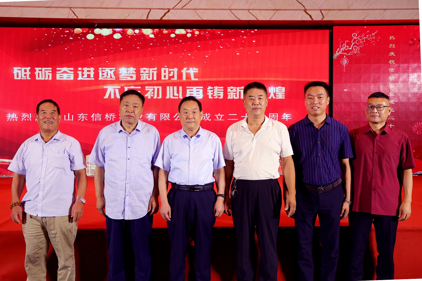 歲月如歌,風(fēng)霜如畫,二十七年彈指一揮間,山東信橋?qū)崢I(yè)有限公司(以下簡(jiǎn)稱山東信橋)迎來(lái)了二十七周年的生日。二十七年來(lái),信橋人在激烈的市場(chǎng)競(jìng)爭(zhēng)中奮力拼搏、砥礪前行,接受了市場(chǎng)風(fēng)風(fēng)雨雨的洗禮,取得了累累碩果。為了慶祝這一特殊的日子,2021年8月8日,以“拼搏進(jìn)取,開創(chuàng)新時(shí)代”為主題的山東信橋二十七周年慶典活動(dòng)在寶盛大酒店舉行。