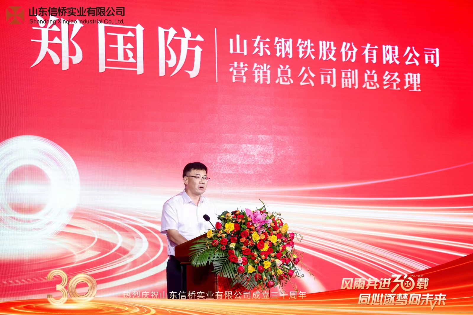 鄭總首先對信橋30周年慶典表示祝賀,并強(qiáng)調(diào)信橋公司在耐低溫和低合金型鋼以及角鋼等領(lǐng)域表現(xiàn)突出,為國內(nèi)外重點工程、重要客戶提供了滿意的產(chǎn)品和服務(wù),為塑造山鋼品牌做出巨大貢獻(xiàn)。最后對雙方合作做出美好展望。
