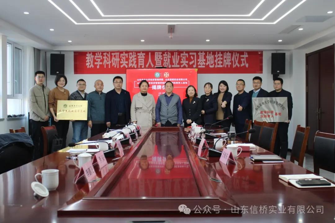 11.28日,山東農業(yè)大學經(jīng)管學院與山東信橋實業(yè)有限公司在信橋公司舉行了教學科研實踐育人暨就業(yè)實習基地掛牌儀式。